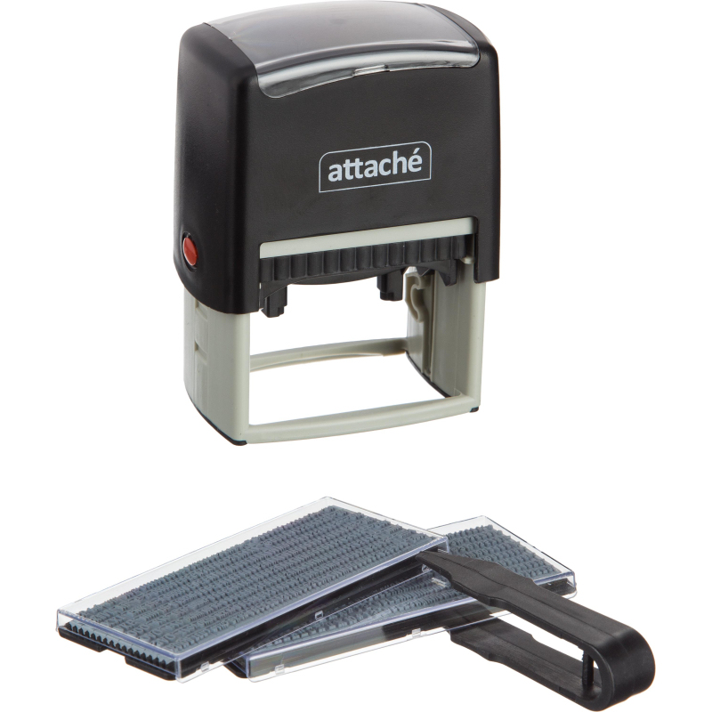 Штамп самонаборный Attache с рамкой предназначен для самостоятельного создания и изменения текста оттиска. Компактный и надежный пластиковый корпус с автоматическим поворотным окрашивающим механизмом. Легкая и чистая замена штемпельной подушки. Оптимальный набор букв, цифр и символов. Размер оттиска - 60x40 мм. Максимальное количество строк: 8. Максимальное количество знаков в каждой строке - 29 основным шрифтом. Максимальное количество знаков: 240. Комплектация: штамп с рифленой пластиной для набора.