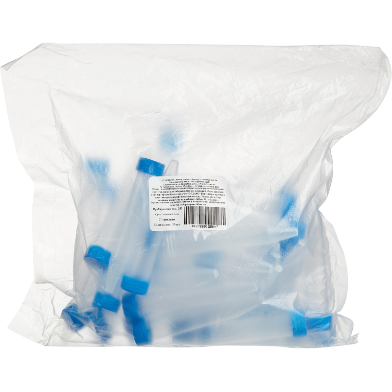 Пробирка коническая, 10 мл, ПП, окно д/записи, стер., 50шт/уп