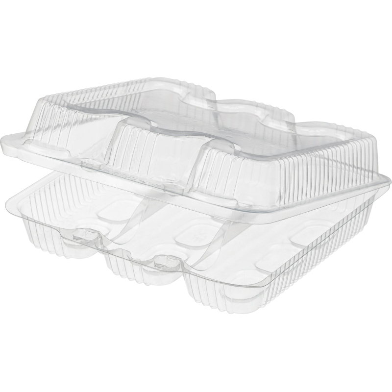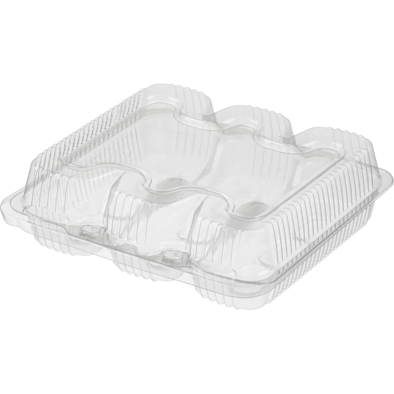 Контейнер с крышкой Протэк ПР-К-28С3, 160х150х50 мм, 320 штук в упаковке. Контейнер-ракушка предназначен для фасовки пирожных-эклеров и узких прямоугольных пирожных. Прозрачная упаковка под эклеры популярна своими размерами 160х150х50 мм и количеством ячеек 3 шт. Контейнер прозрачный выполнен из качественного пластика (ПЭТ), не имеет запаха, не мнется легко. В упаковке 320 штук.