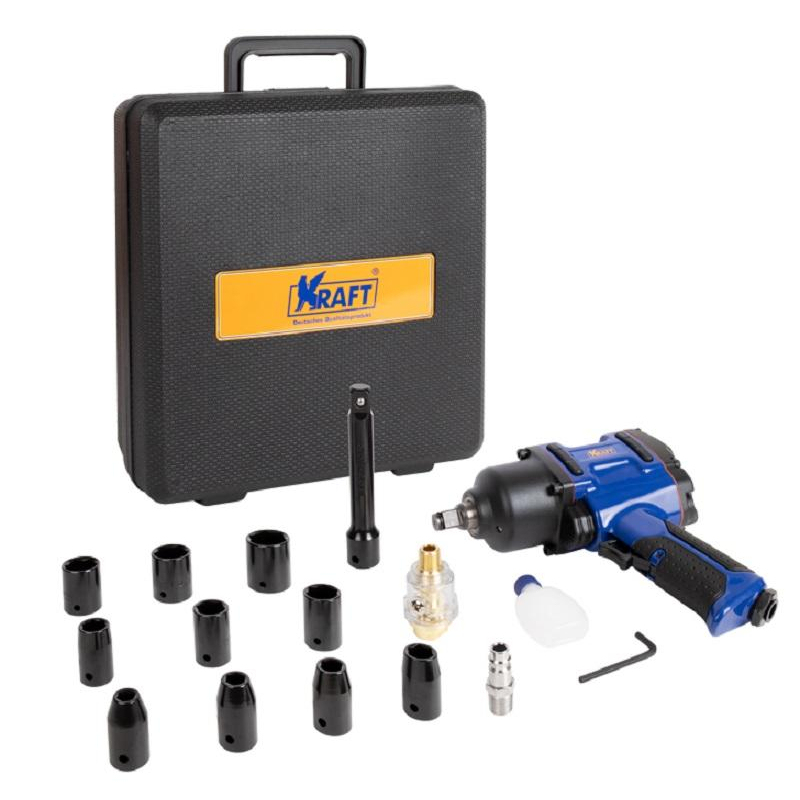 Пневматический ударный гайковерт Kraft KT 707007 предназначен для завинчивания и отвинчивания любого типа крепежа ударно-импульсным методом. В ударном гайковерте серии ударов передаются от двигателя к шпинделю через ударный механизм "Двойной молот", который усиливает крутящий момент на старте и создает мощный равномерный рывок. Гайковерт в наборе с торцевыми головками Kraft устойчив к перегрузкам и позволяет на протяжении длительного времени производить работы без остановки, обеспечивая высокое качество выполняемых работ. Благодаря корпусу из ударопрочного композитного материала удалось значительно уменьшить вес гайковерта, снизив уровень шума и вибрации. Размер привода: 1/2", длина привода: 16 мм, скорость холостого хода: 7000 об/мин, рабочее давление: 6.2 кгс/см, максимальный крутящий момент: 900 Нм, соединение штуцера: 1/4", внутренний диаметр шланга: 3/8", средний расход потребляемого воздуха: 200 л/мин. В комплекте: гайковерт пневматический ударный KT 707003, набор торцевых головок (9, 10, 11, 13, 14, 17, 19, 22, 24, 27 мм), быстросъемный адаптер, шестигранный ключ, масло для пневмоинструмента в масленке, удлинитель, мини-лубрикатор.