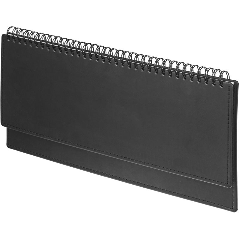 Планинг датированный 2024 год, цвет черный -303х150 мм, 120 стр., блок в 2 краски, календарь на 1 год. Однотонная обложка из высококачественного переплетного материала, гладкий матовый. Возможно нанесение логотипа на обложку, любым способом тиснения. Блок: офсет 70 г/м2 (линейка). Содержит информационно-справочный блок - планы на год; Блок для заметок.