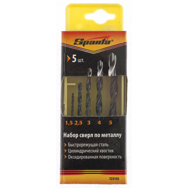 Набор Sparta включает 5 сверл по металлу диаметром 1,5-2,5-3-4-5 мм, из стали HSS, с цилиндрическим хвостовиком, упакованных в пластиковый бокс. Они предназначены для сверления отверстий в металлических заготовках. В комплекте сверла самых ходовых размеров, которые будут полезны дома, на даче или в гараже.