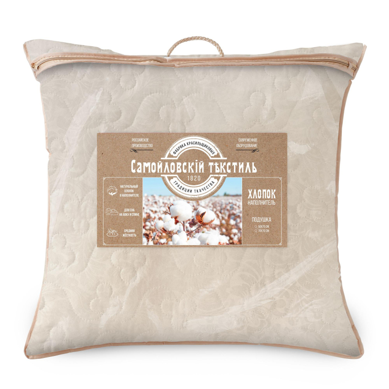 Подушка Самойловский текстиль 70x70 см полиэстер/полиэстер со стежкой. Хлопковая подушка Самойловский текстиль отличается легкостью, упругостью и прекрасной теплоизоляцией. Стеганый чехол гарантирует надежное удержание наполнителя и предотвращает потерю формы. За подушкой для сна легко ухаживать (машинная стирка), она быстро сохнет, долго остается упругой. Подушки изготавливаются по технологии TwinZone: 2 различных по структуре и составу слоя обеспечивают максимальный комфорт. Внешний слой с природными материалами создает особый микроклимат, отвечает за приятные тактильные ощущения и обладает полезными свойствами. Внутренний слой гарантирует упругий объем: изделие дарит качественный сон и способствует расслаблению. Самойловский текстиль - это идеальное сочетание пользы натуральных материалов с практичностью материалов синтетических, гарантирующих износостойкость и долговечность. Более двухсот лет мы передаем секреты ткацкого ремесла из поколения в поколение и совершенствуем технологии, чтобы создавать знаковый российский текстиль! Размер изделия: 70x70 см. Вес изделия: 850 г. Рекомендации по уходу: стирка 1 раз в год при деликатном режиме и температуре воды не выше 40 градусов. Отжим при минимальных оборотах. Тщательная сушка. Упаковка: сумка ПВХ с ручкой.