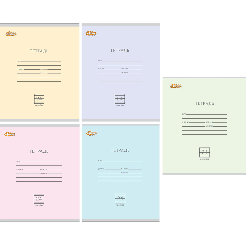 Тетрадь школьная ученическая формата А5+ (170х203 мм). Обложка из высококачественного мелованного картона плотностью 180 г/м2. В блоке 24 листа в линейку с полями. Бумага офсетная плотностью 60 г/м2. Цвет линовки - синий. Скругленные уголки обложки и блока. Тип скрепления - скоба. Тетради одного цвета упакованы в термоусадочную пленку по 10 штук. Товар поставляется в нескольких вариантах цвета без возможности выбора.