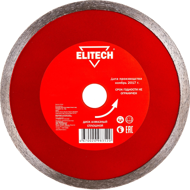 Диск алмазный ELITECH сплошной, d200х25.4х2.4мм, д\плиткореза (1820.058900)Алмазный диск со сплошной кромкой ELITECH 1820.058900 используется для плиткореза. Применение диска со сплошной кромкой минимизирует риск появления сколов на линии реза и позволяет добиться максимально возможного качества распила. Сплошная кромка легко перегревается и поэтому должна при работе охлаждаться водой.