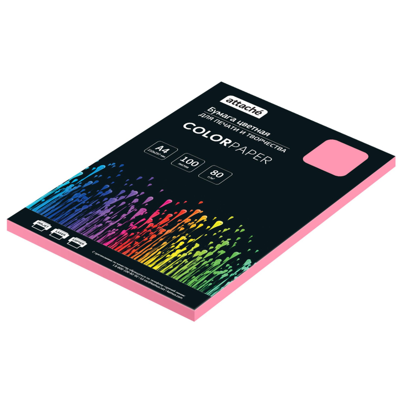 Бумага цветная Attache (розовый пастель) предназначена для печати на всех видах принтеров. Одна пачка содержит 100 листов формата А4, плотность которых составляет 80 г/кв.м. Цветопередача монитора может искажать реальный цвет продукта.