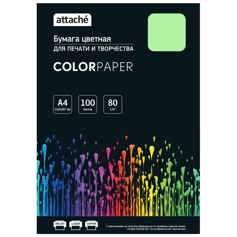 Бумага цветная Attache (зеленый пастель) предназначена для печати на всех видах принтеров. Одна пачка содержит 100 листов формата А4, плотность которых составляет 80 г/кв.м. Цветопередача монитора может искажать реальный цвет продукта.