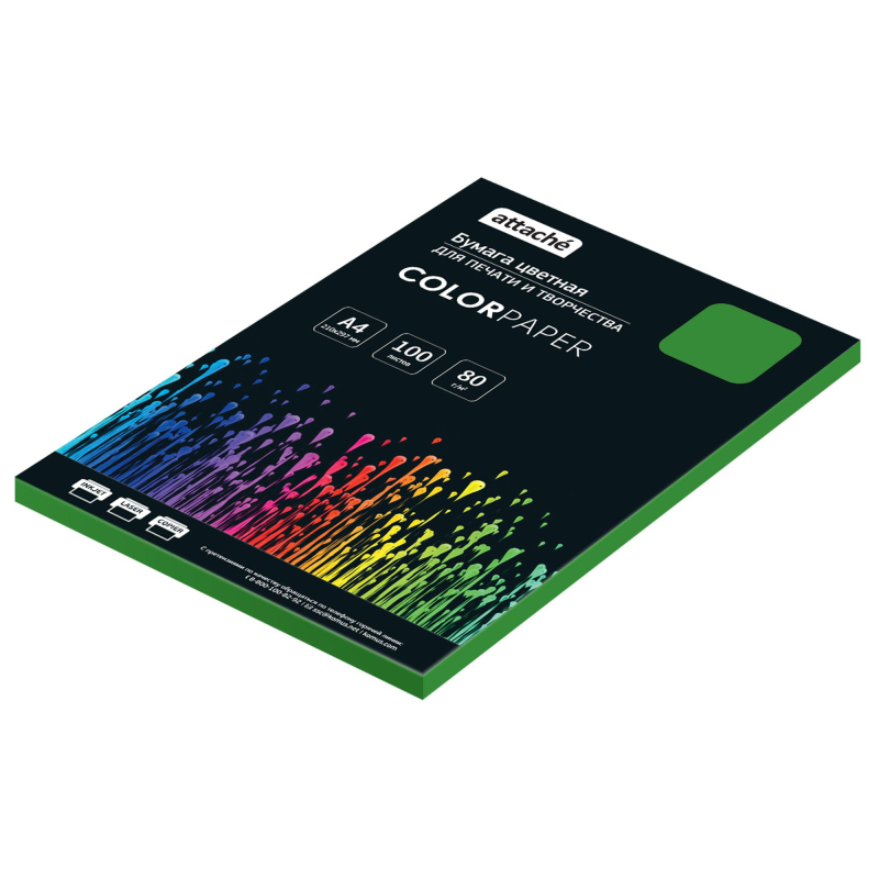 Бумага цветная Attache (зеленый интенсив) предназначена для печати на всех видах принтеров. Одна пачка содержит 100 листов формата А4, плотность которых составляет 80 г/кв.м. Цветопередача монитора может искажать реальный цвет продукта.