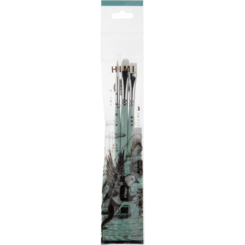 Набор кистей из синтет HIMI 3шт круг№4,плоск№6,овал№8 зелен FC.ST.024/GREEN