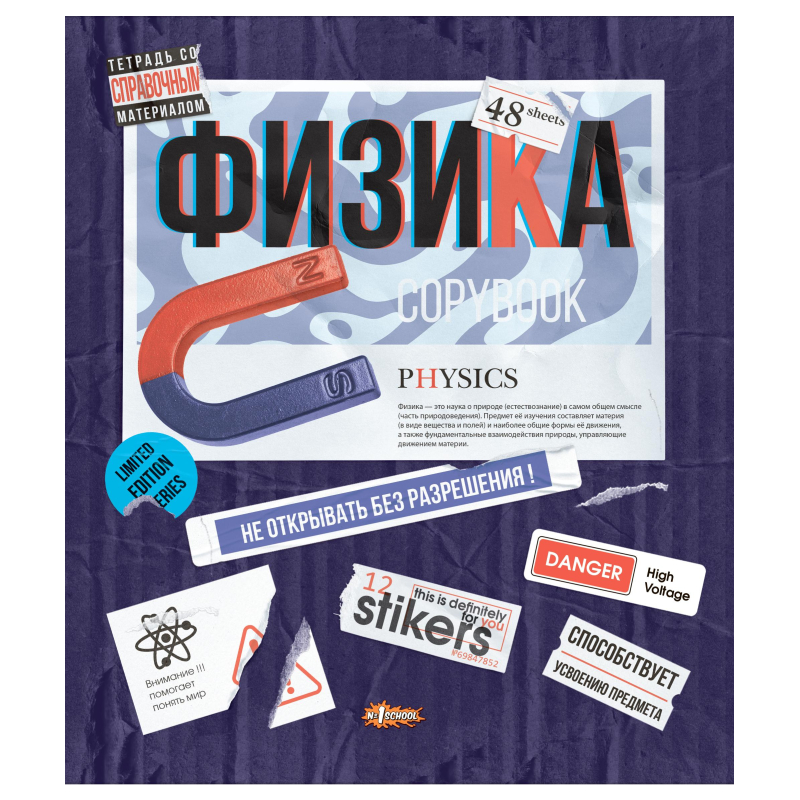 Тетрадь предметная по физике №1 School Стикеры А5 48 листов разноцветная в клетку TWIN лак Предметная тетрадь по физике используется в старших классах. Обложка из офсетной бумаги надолго сохранит внешний вид тетради. Дизайн изделия дополнен спецэффектом в виде тиснения. Справочная информация является мини-пособием при подготовке к проверочным работам и экзаменам. Тетрадь поддерживает приложение с интерактивной справочной информацией HatberHelp. Достаточно скачать бесплатное приложение в App Store или Google Play, навести камеру смартфона на QR-код на обложке и выбрать интересующую тему из школьной программы. Приложение работает без доступа в интернет. Внутренний блок: офсет 65 гр. Линовка: клетка, красные поля.