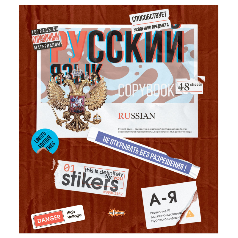 Тетрадь предметная по русскому языку №1 School Стикеры А5 48 листов разноцветная в линию TWIN лак Предметная тетрадь по русскому языку используется в старших классах. Обложка из офсетной бумаги надолго сохранит внешний вид тетради. Дизайн изделия дополнен спецэффектом в виде тиснения. Справочная информация является мини-пособием при подготовке к проверочным работам и экзаменам. Тетрадь поддерживает приложение с интерактивной справочной информацией HatberHelp. Достаточно скачать бесплатное приложение в App Store или Google Play, навести камеру смартфона на QR-код на обложке и выбрать интересующую тему из школьной программы. Приложение работает без доступа в интернет. Внутренний блок: офсет 65 гр. Линовка: линия, красные поля.