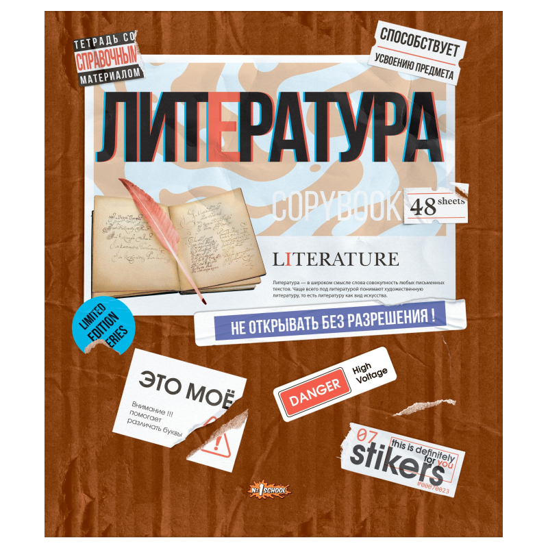 Тетрадь предметная по литературе №1 School Стикеры А5 48 листов разноцветная в линию TWIN лак Предметная тетрадь по литературе используется в старших классах. Обложка из офсетной бумаги надолго сохранит внешний вид тетради. Дизайн изделия дополнен спецэффектом в виде тиснения. Справочная информация является мини-пособием при подготовке к проверочным работам и экзаменам. Тетрадь поддерживает приложение с интерактивной справочной информацией HatberHelp. Достаточно скачать бесплатное приложение в App Store или Google Play, навести камеру смартфона на QR-код на обложке и выбрать интересующую тему из школьной программы. Приложение работает без доступа в интернет. Внутренний блок: офсет 65 гр. Линовка: линия, красные поля.