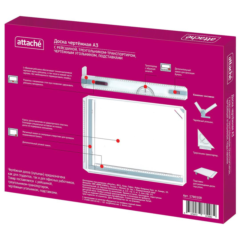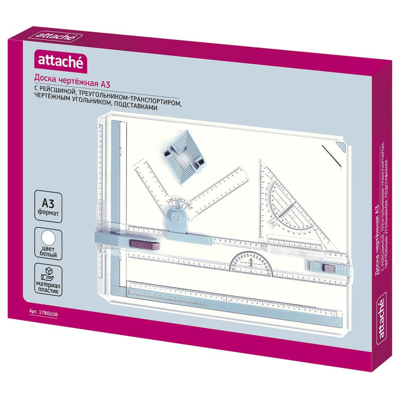 Доска-планшет пластиковая маркерная Attache Кульман 37x50.5 см (горизонтальная, белая рабочая поверхность). Подойдет как для студентов, так и для офисных работников. Доска изготовлена из пластика высокой прочности. Имеет антискользящие резиновые ножки, треугольник-транспортир, чертежный угольник, пластиковую линейку,