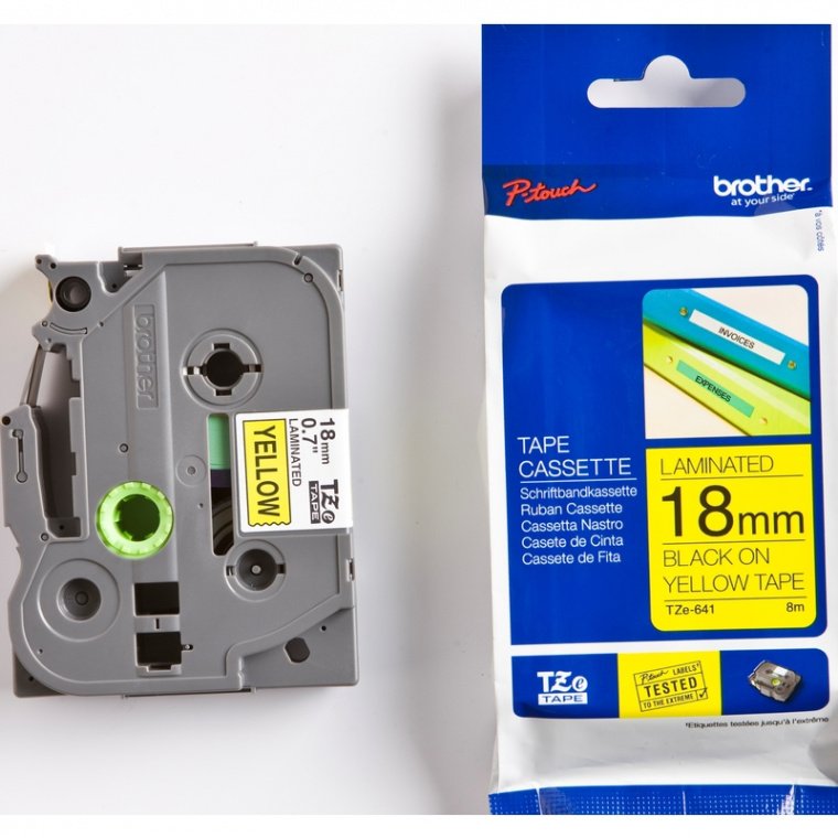 Картридж для этикет-принтеров BrotherTZE-641 моделей PT-E300VP/E550WVP/2430PC/D450VP/D600VP/P700/P750W/2700VP/P900W/9700PC, представляет собой стандартную ламинированную ленту с клейким слоем. Ширина 18 мм, длина ленты 8 м. Шрифт черный, фон желтый. Кассеты с лентой TZe Brother гарантируют безупречную работу принтеров для печати наклеек P-touch, обеспечивая профессиональное качество печатных материалов.