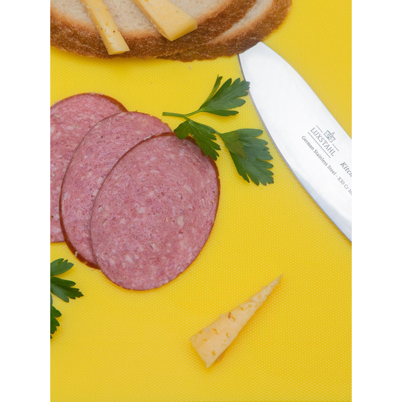Доска разделочная Клен пластик 60х40 см. Доска разделочная Клен предназначена для нарезки продуктов на предприятиях общественного питания, торговли и для дома. Изделие выполнено из пластика, соответствующего нормам сертификации. Прочная разделочная доска из пищевого пластика, благодаря своим незаменимым качествам непременно станет одним из Ваших любимых инструментов на кухне. Размер доски: 600х400х18 мм.