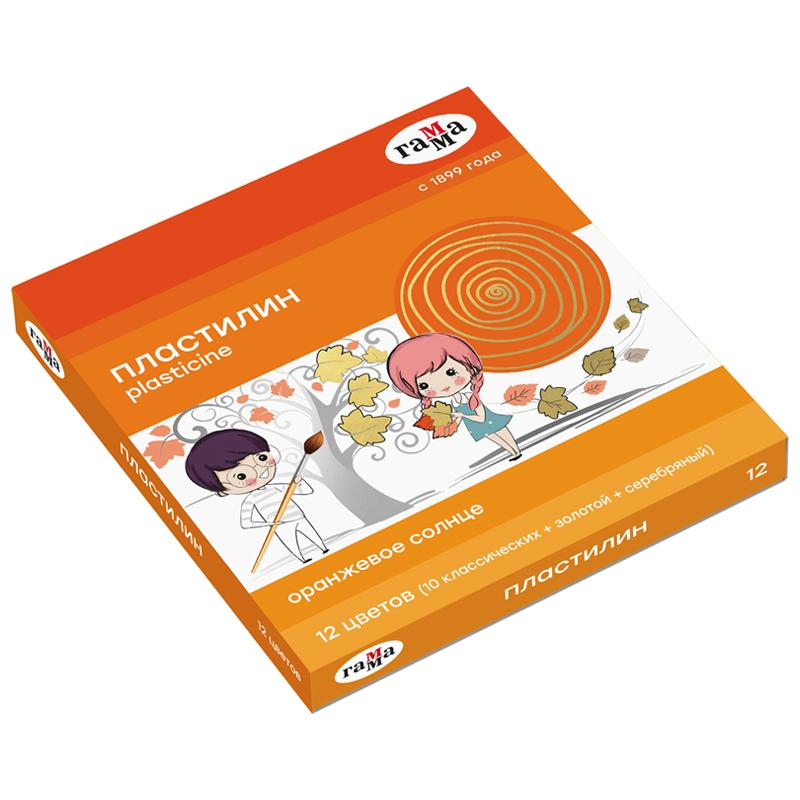 Пластилин Гамма Оранжевое солнце,наб.12цв(10клас,зол,серебр),172г,со стеком