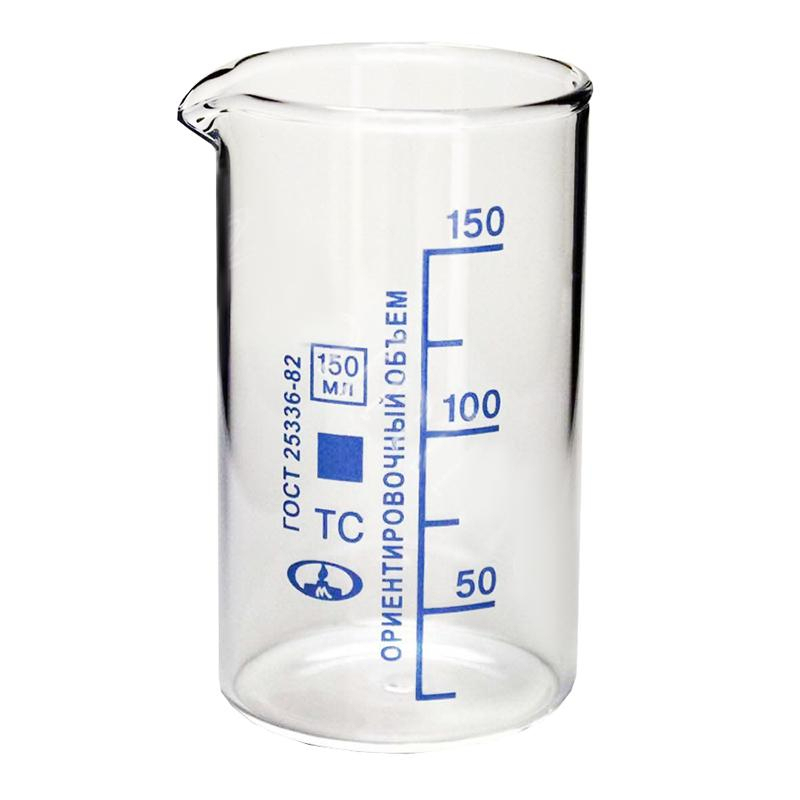 Разработан для выполнения большинства химических процедур. Изготовлен по ТУ 9464-019-29508133-2015 в соответствии с техническими требованиями ГОСТ 25336-82. Имеет ориентировочную шкалу. Изготовлен из стекла марки ТС по ГОСТ 21400-75. Объем - 150 мл. Цена деления - 25 мл. Диаметр - 54+1,0 мм. Высота - 98+2,0 мм.