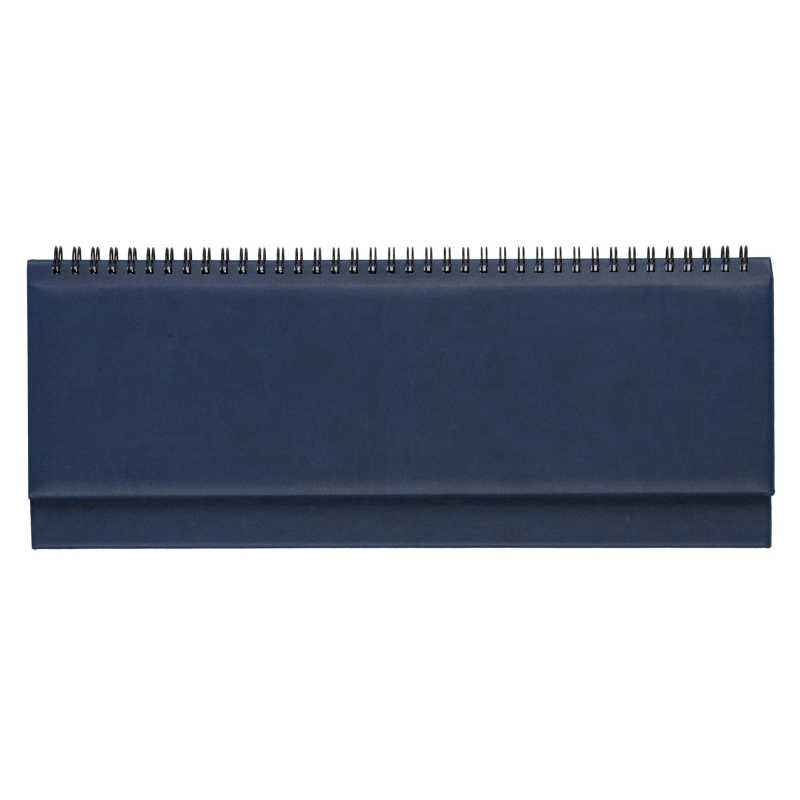 Формат: 405х145мм. Цвет: синий. Блок 110 страниц (55 листов) в 2 краски. Бумага офсетная 70гр/м2. Календарь на 2024-2025гг. Вырубка блока по месяцам. Твердая обложка выполнена из искусственной кожи высокого качества. Возможно нанесение логотипа на обложку, любым способом тиснения (блинт или фольга).