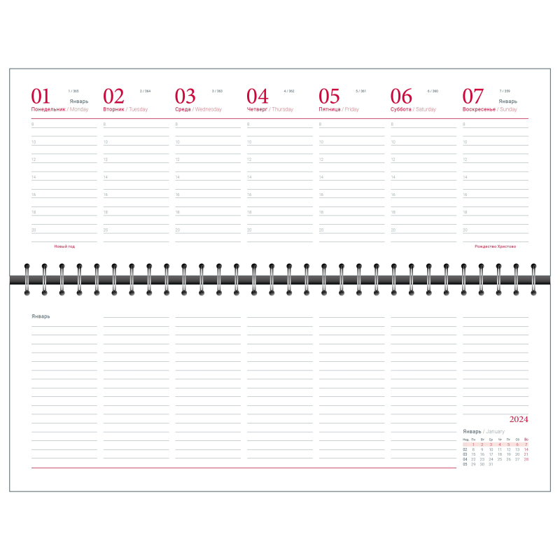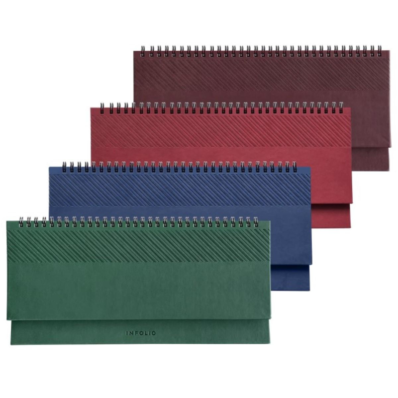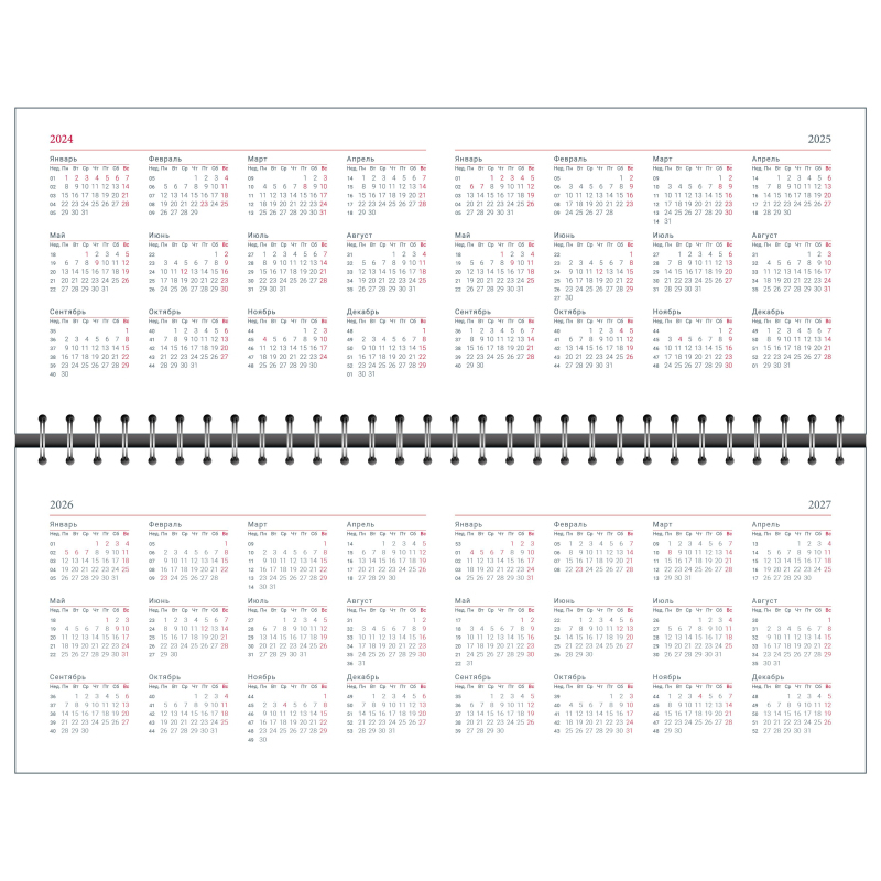 Коллекция "Velure" от Infolio выполнена из тактильно приятного материала в классическом дизайне, органично дополненном изысканным тиснением по корешку. Настольный датированный на 2024 год планинг размером 140х290 мм на спирали будет не только незаменимым помощником в ведении дел, но и станет стильным аксессуаром, отражающим индивидуальность владельца. Твердая обложка из приятной искусственной кожи с декоративным тиснением имеет прямые уголки. Удобное крепление на открытой спирали позволит удалять ненужные листы, не повредив при этом сам блок. Датированный внутренний блок в линейку на 64 листа (128 страниц) - из высококачественной бумаги 100% белизны и плотностью 70 г/м2 с прямыми уголками. Информационный блок планинга включает в себя: личные данные, календари на 2024-2027 гг, разворот "планирование и важные даты".