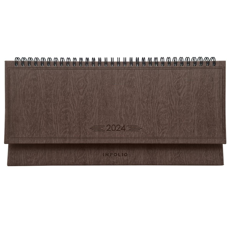 Коллекция "Wood" от Infolio выполнена в неоклассическом дизайне, имитирующем древесную фактуру - гармоничное сочетание строгости, благородного цвета и оригинального материала. Настольный датированный на 2024 год планинг размером 140х290 мм на спирали будет не только незаменимым помощником в ведении дел, но и станет стильным аксессуаром, отражающим индивидуальность владельца. Твердая обложка из фактурной искусственной кожи с декоративным тиснением по периметру и тиснением года имеет прямые уголки. Удобное крепление на открытой спирали позволит удалять ненужные листы, не повредив при этом сам блок. Датированный внутренний блок в линейку на 64 листа (128 страниц) - из высококачественной бумаги 100% белизны и плотностью 70 г/м2 с прямыми уголками. Информационный блок планинга включает в себя: личные данные, календари на 2024-2027 гг, разворот "планирование и важные даты".
