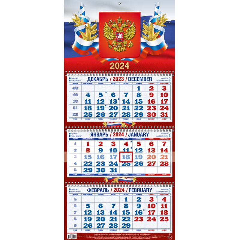 Календарь настен,2024,Госсимволика,3 спир,офс,310х680,4524005