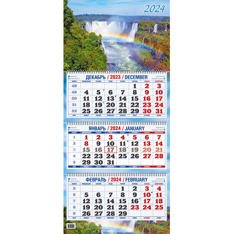 Календарь настен,2024,Водопад,3 спир,офс,310х680,КБ02-24