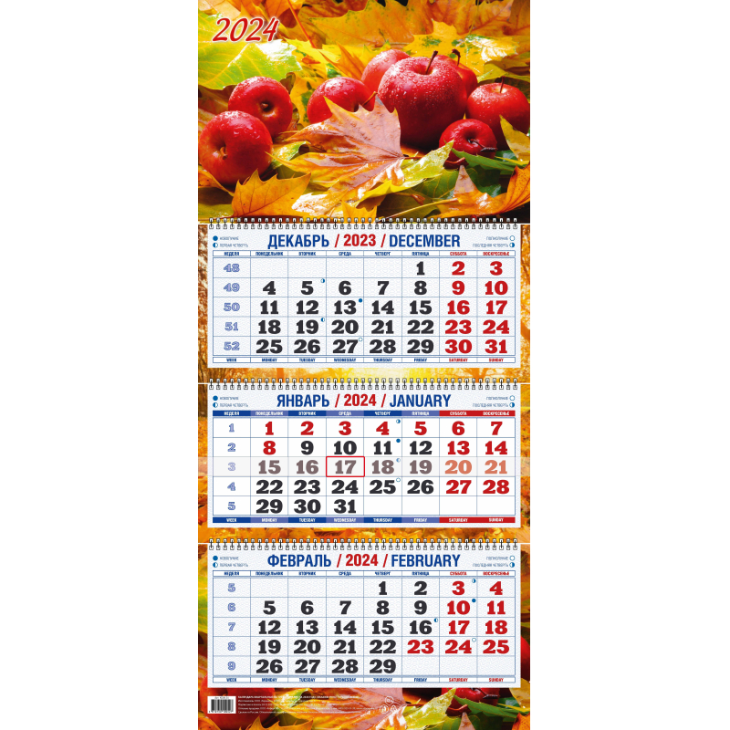 Календарь настен,2024,Краски осени,3 спир,офс,310х680,КБ06-24
