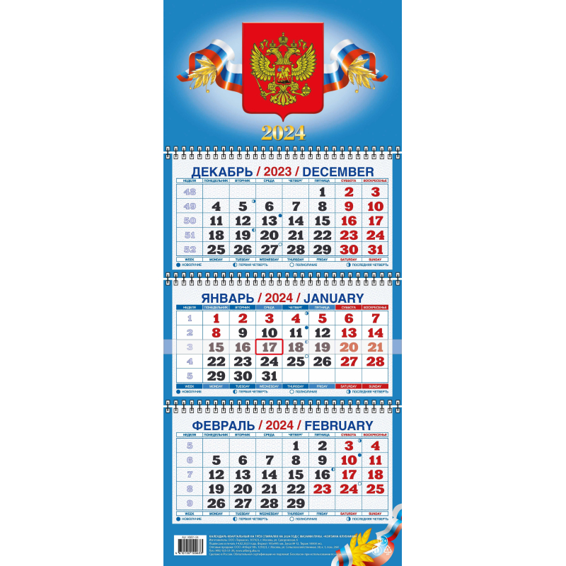 Календарь настенный 3-х блочный 2024 год Госсимволика (19.5x46.5 см)