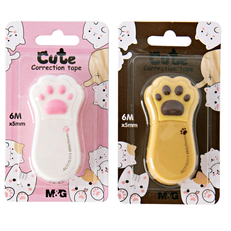 Корректирующая лента M&G выполнена в форме кошачьей лапки и предназначена для исправления текста на любом типе бумаги. Не требует длительного высыхания, можно сразу писать по исправленному тексту. Защитный колпачок защищает ленту от повреждения. Общая длина корректирующей ленты - 6 м, ширина - 5 мм. Товар поставляется в нескольких вариантах цвета корпуса (без возможности выбора).