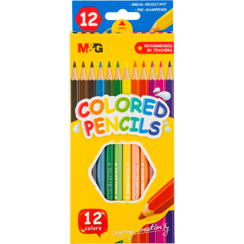Карандаши цветные M&G, заточенные, для рисования, письма и раскрашивания на бумаге. Идеально подходят для детей и студентов, а также взрослых, которым нравится заниматься творчеством. 12 ярких и насыщенных цветов. Изготовлены из качественной древесины, ударопрочные и легко затачиваются, не оставляя заусенцев. Форма карандаша шестигранная, что позволяет правильно располагать пальцы. Упакованы в картонную коробку 88x180x8 мм.