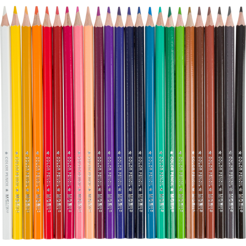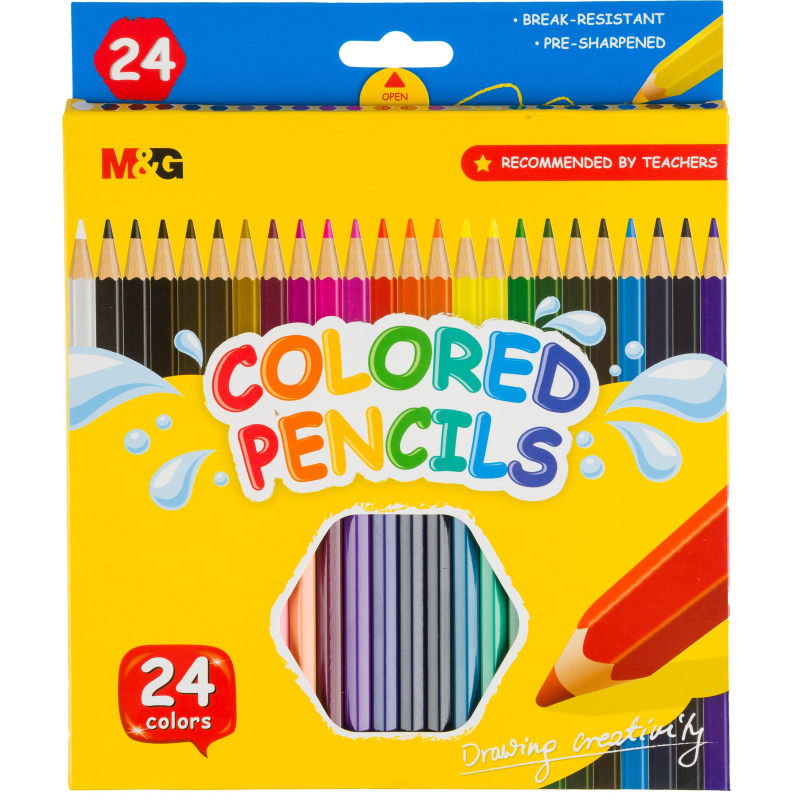 Карандаши цветные M&G, заточенные, для рисования, письма и раскрашивания на бумаге. Идеально подходят для детей и студентов, а также взрослых, которым нравится заниматься творчеством. 24 ярких и насыщенных цвета. Изготовлены из качественной древесины, ударопрочные и легко затачиваются, не оставляя заусенцев. Форма карандаша шестигранная, что позволяет правильно располагать пальцы. Упакованы в картонную коробку 178x180x8 мм.
