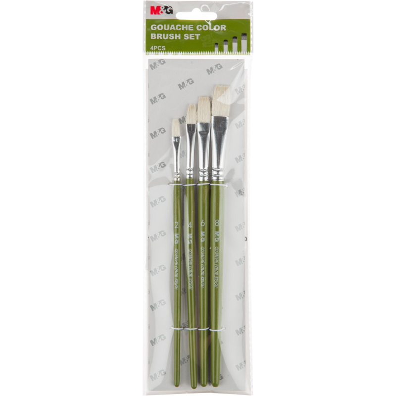 Кисть для гуаши M&G, дерево, алюминий, нейлон+шерсть, 4 шт. в наборе