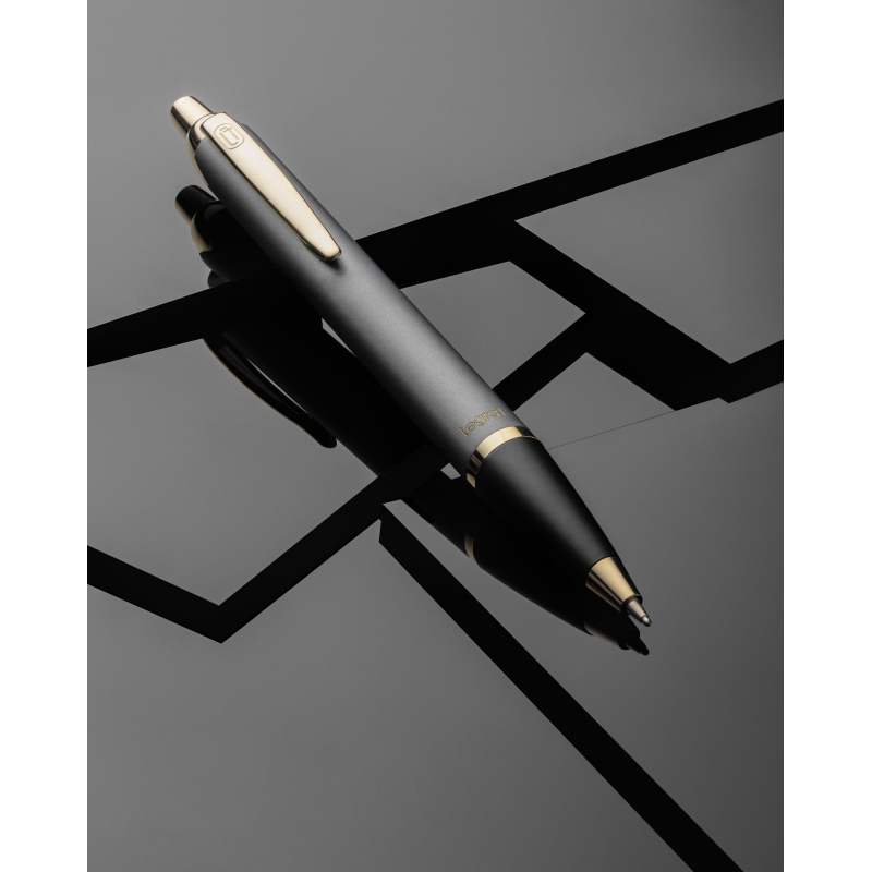 Шариковая ручка Legraf Rouan с кнопочным механизмом выполнена из латуни. Корпус имеет матовое темно-серое покрытие и детали золотистого цвета. Ручка поставляется в престижной подарочной коробке. Толщина линии письма 0.5 мм. Цвет чернил - синий.