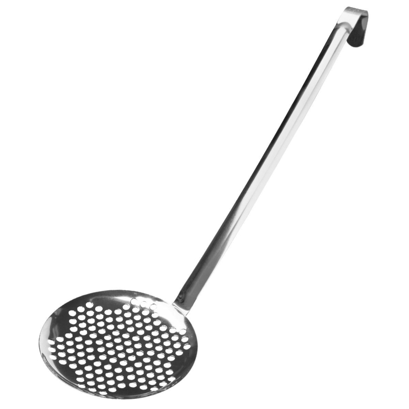 Шумовка Luxstahl нержавеющая сталь 40 см (кт1606). Шумовка используется на предприятиях общественного питания для съема пены и накипи с готовящихся блюд, а также извлечения приготовленных продуктов из кипятка, бульона, подливы и других жидкостей. Изделие оснащено удобной длинной ручкой с крючком на конце. Длина: 400 мм. Диаметр: 170 мм. Выдерживает высокие температуры и подходит для мытья в посудомоечной машине.