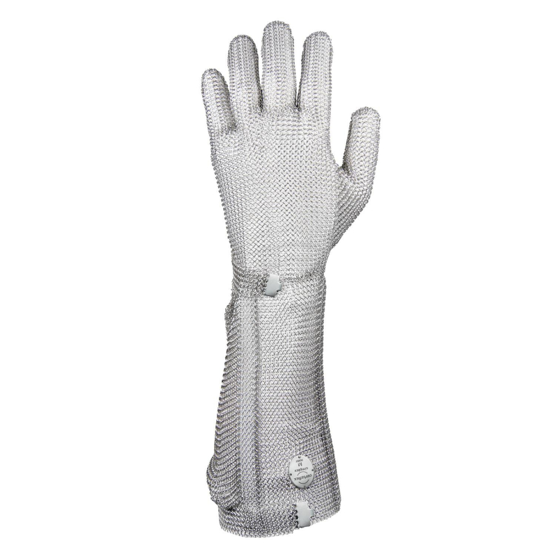 Перчатка кольчужная Certaflex Simplex-190 mm для защиты от порезов и проколов (размер L). Certaflex Simplex-190 mm перчатка кольчужная с металлической застежкой и манжетой 190 мм. Простая в обслуживании без сменяемых расходников, при этом надежно фиксирует перчатку в запястье с помощью уникальной металлической застежки-крючка. Изготовлены из кольчужного полотна. Полотно из колец из высококачественной нержавеющей стали. Диаметр колец 4,00 мм, толщина стальной проволоки 0,55 мм. Сталь предназначена для применения на пищевых производствах. Гибкие ребра жесткости в манжетах позволяют легко выворачивать перчатку для ношения на левой либо на правой руке (универсальные). Легко чистятся. Выдерживают промышленные способы очистки. Информативные шильдики.