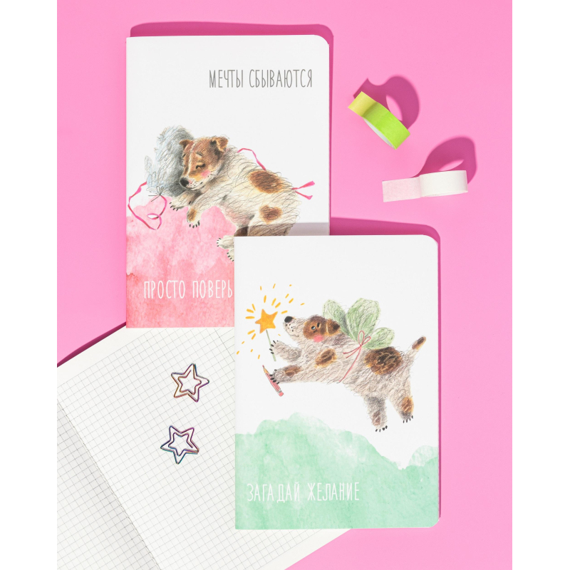 Тетрадь общая №1 School "Песик" А5 40 листов в клетку на сшивке (обложка с рисунком, матовая ламинация, 2 штуки в упаковке). Белая бумага с серой линовкой. Размер: 14,5x20,5 см. Плотность обложки: 200 г/кв.м. Плотность листа: 70 г/кв.м.