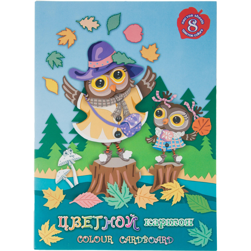 Картон цветной тонирован в массе А4 8л 8цв Совки гуляют НК-4907