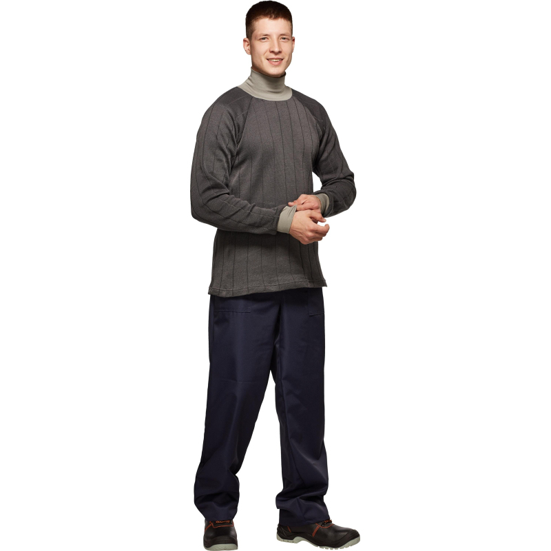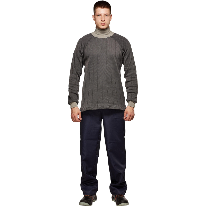 Фуфайка-свитер для защиты от электродуги Энергия Арамид унисекс тип АС-3 ЗЭТВ 30,5 темно-синий (размер 48-50, рост 170-176). Фуфайка-свитер модели Энергия Арамид типа АС-3 ЗЭТВ 30,5 подойдет и для мужчин, и для женщин. Рекомендуется использовать в таких областях, как энергетика. Термостойкая для защиты электротехнического персонала от термических рисков электрической дуги, от теплового излучения, от конвективной теплоты, от кратковременного воздействия открытого пламени из огнестойкого трикотажного полотна "Термоскин Арамид 370 (Thermoskcin Aramid 370)". Состав ткани - 98% арамидные волокна, 2% антиэлектростатические волокна. Плотность ткани - 370 г/м2. Выполнена модель в темно-синем цвете. Применяется в комплекте с зимним термостойким костюмом для защиты от электрической дуги, а также в демисезонный период с летними термостойкими костюмами. Горловина фуфайки-свитера обработана обтачкой. Рукава одношовные втачные, с термостойкими напульсниками. Уровень защиты: 30,5 кал/см2. Соответствует стандартам ТР ТС 019/2011, ГОСТ Р 12.4.234-2012, ГОСТ Р ИСО 11612-2020.