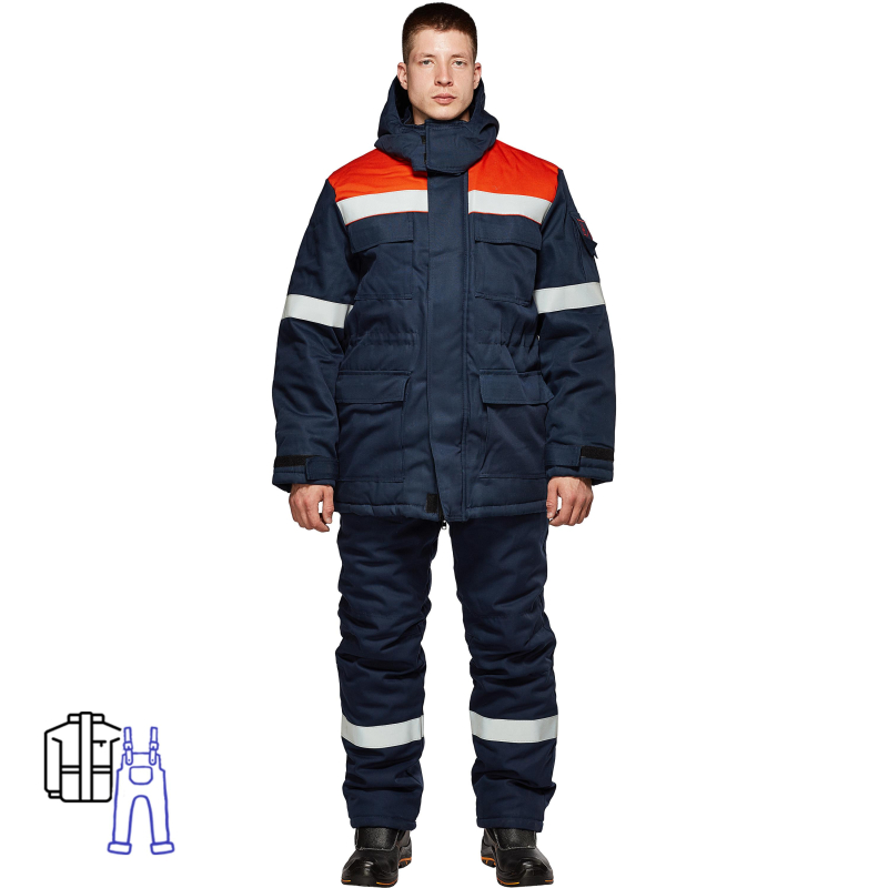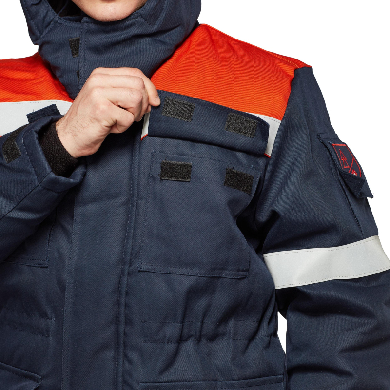 Костюм для защиты от электродуги модели Энергия КБР подходит и для мужчин, и для женщин. Выполнен в синем и оранжевом цветах. Размер 52-54, рост 182-188. Костюм зимний изготовлен из термоогнестойкой антистатической смесовой ткани (Flametuff) - 88% х/б, 12% ПА, в том числе 2% антиэлектростатическая нить. Плотность ткани 305 г/м2. Состоит из куртки и полукомбинезона, от пониженных температур (1-4 класс защиты для эксплуатации в 1,2,3 климатических поясах). Термостойкий утеплитель Аркпротект 150, плотностью 150 г/м2, подкладка Унилайн, плотностью 170 г/м2. Для защиты электротехнического персонала от термических рисков электрической дуги; от теплового излучения; от конвективной теплоты; от кратковременного воздействия открытого пламени; от пониженных температур; от общих производственных загрязнений и механических воздействий (истирания). Куртка - Прямого силуэта с воротником стойкой. - Утеплитель притачной, термостойкий. - Ширина рукавов куртки по низу регулируется патами. - Ширина куртки по низу регулируется патами. - 4 накладных кармана. - По линии талии - кулиса. Полукомбинезон - Прямой силуэт, с притачным поясом. - 2 накладных кармана. - Застежка с дополнительным ветрозащитным клапаном. - Утеплитель притачной термостойкий. Соответствует стандартам ГОСТ Р 12.4.234-2012, ГОСТ Р ИСО 11612-2014, ТР ТС 019/2011.