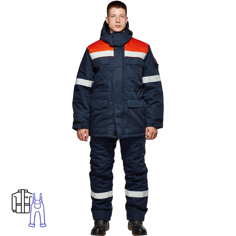 Костюм для защиты от электродуги модели Энергия КБР подходит и для мужчин, и для женщин. Выполнен в синем и оранжевом цветах. Размер 56-58, рост 182-188. Костюм зимний изготовлен из термоогнестойкой антистатической смесовой ткани (Flametuff) - 88% х/б, 12% ПА, в том числе 2% антиэлектростатическая нить. Плотность ткани 305 г/м2. Состоит из куртки и полукомбинезона, от пониженных температур (1-4 класс защиты для эксплуатации в 1,2,3 климатических поясах). Термостойкий утеплитель Аркпротект 150, плотностью 150 г/м2, подкладка Унилайн, плотностью 170 г/м2. Для защиты электротехнического персонала от термических рисков электрической дуги; от теплового излучения; от конвективной теплоты; от кратковременного воздействия открытого пламени; от пониженных температур; от общих производственных загрязнений и механических воздействий (истирания). Куртка - Прямого силуэта с воротником стойкой. - Утеплитель притачной, термостойкий. - Ширина рукавов куртки по низу регулируется патами. - Ширина куртки по низу регулируется патами. - 4 накладных кармана. - По линии талии - кулиса. Полукомбинезон - Прямой силуэт, с притачным поясом. - 2 накладных кармана. - Застежка с дополнительным ветрозащитным клапаном. - Утеплитель притачной термостойкий. Соответствует стандартам ГОСТ Р 12.4.234-2012, ГОСТ Р ИСО 11612-2014, ТР ТС 019/2011.