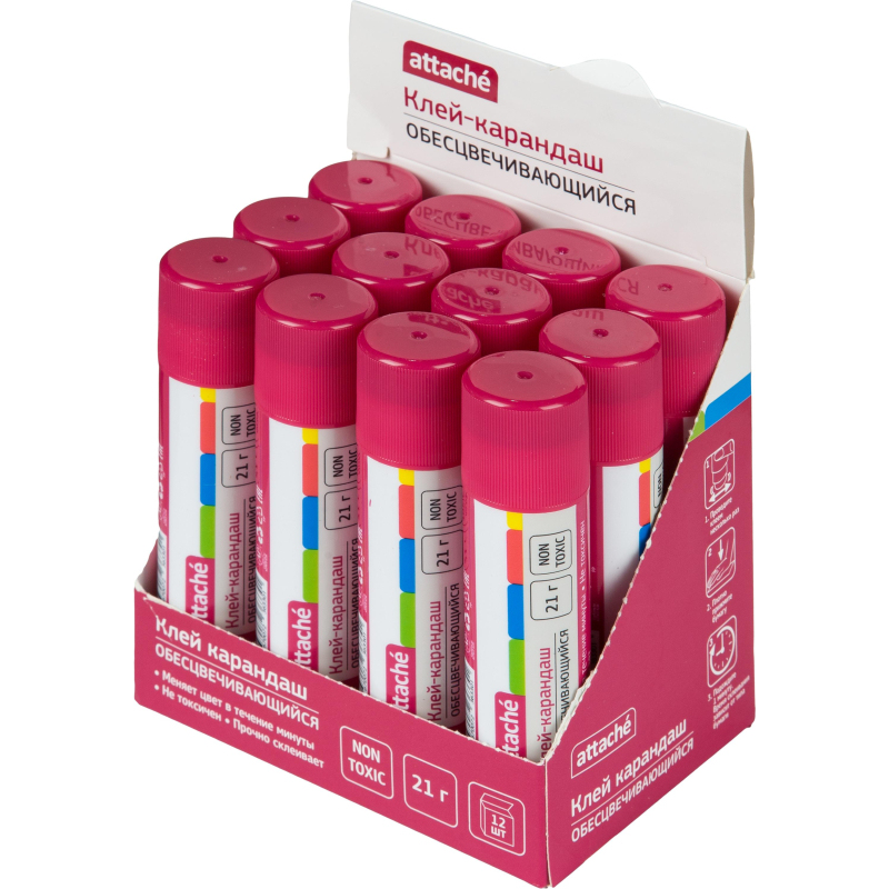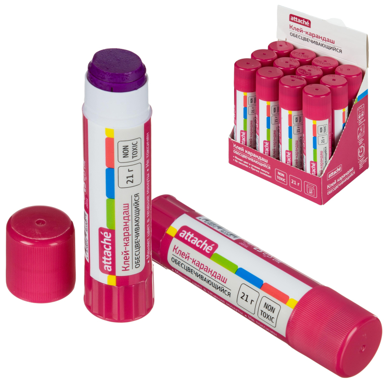 Клей-карандаш Attache Selection круглой формы на ПВП-основе предназначен для склеивания бумаги, картона, фотобумаги и т.д. Вес - 21 г. Классическая круглая форма корпуса эргономична, удобно лежит в руке и позволяет более точно наносить клей. Содержит цветовой пигмент. Морозостойкий. Не токсичен. Легко очищается с одежды, рук, не вызывает аллергии. Клей расходуется экономично, склеивает в течение 1 минуты.