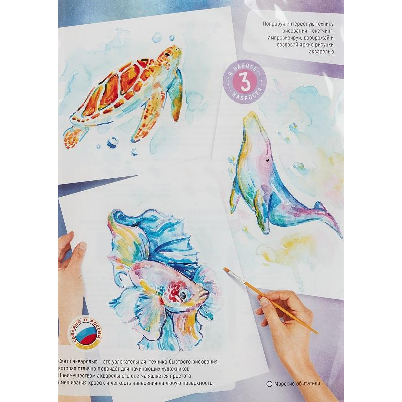 Раскраска скетчинг акварелью Морские обитатели набор Рн-038