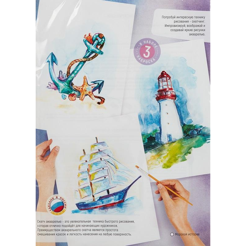 Раскраска скетчинг акварелью Морская история набор Рн-039