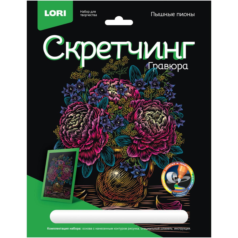 Гравюра -скретчинг цветная 18х24см Цветы Пышные пионы Гр-716