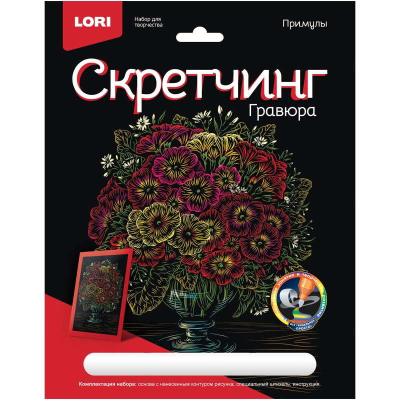 Гравюра -скретчинг цветная 18х24см Цветы Примулы Гр-717