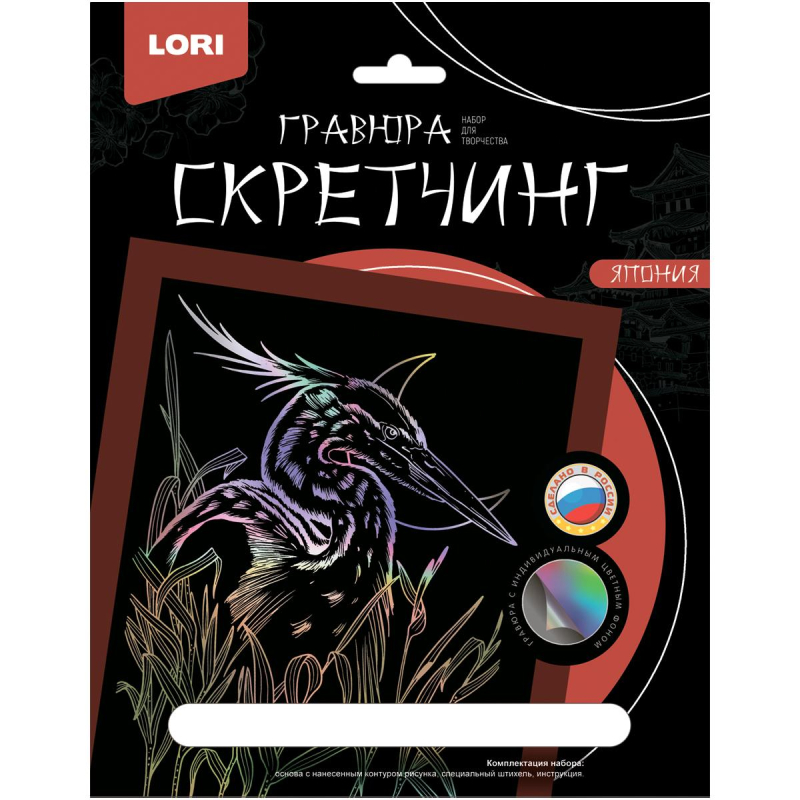 Гравюра -скретчинг цветная 18х24см Япония Японская цапля Гр-744