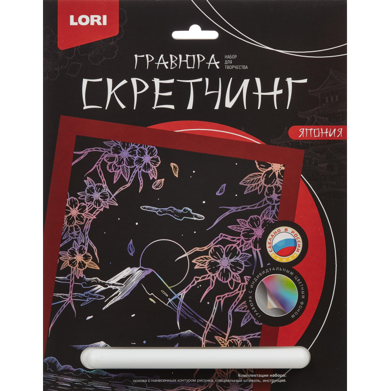Гравюра -скретчинг цветная 18х24см Япония Цветение сакуры Гр-751