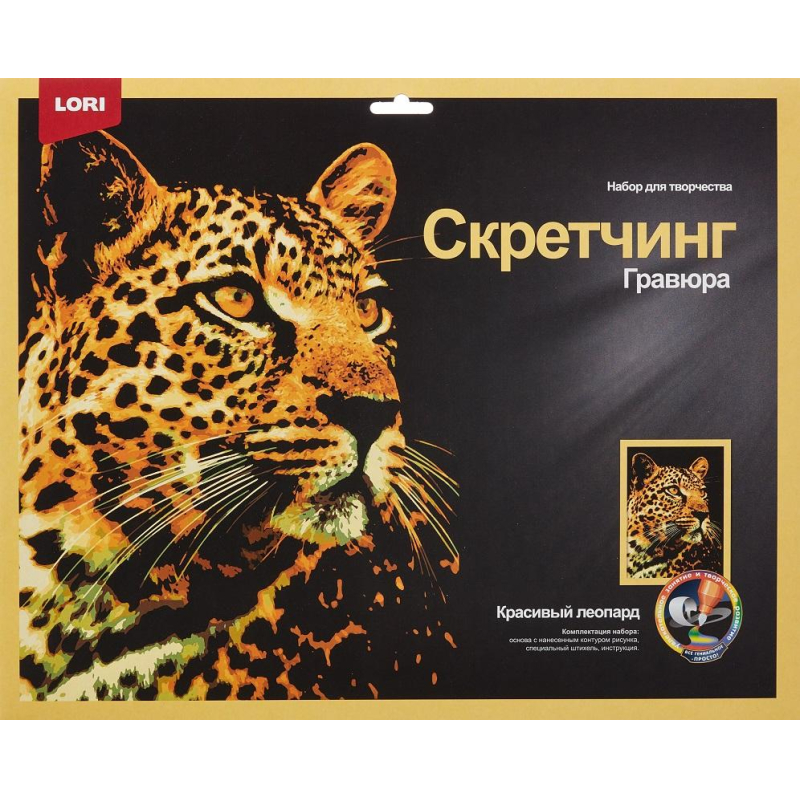 Гравюра -скретчинг цветная 30х40см Животные Красивый леопард Гр-760