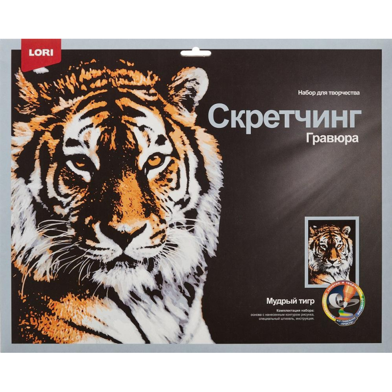 Гравюра -скретчинг цветная 30х40см Животные Мудрый тигр Гр-762
