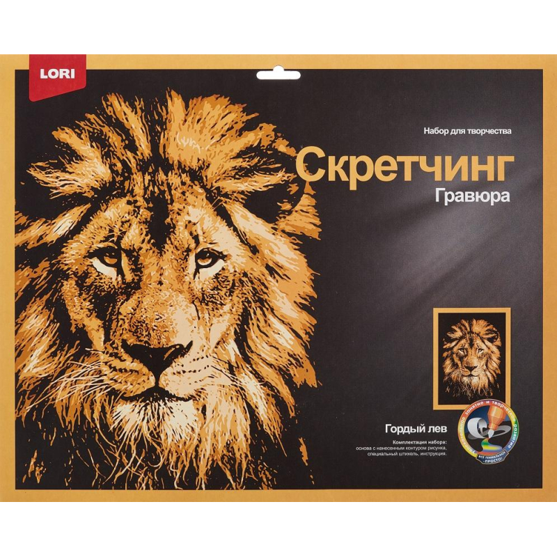 Гравюра -скретчинг цветная 30х40см Животные Гордый лев Гр-764